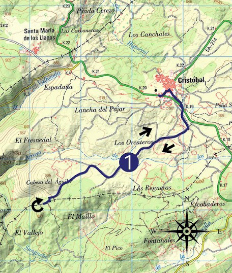 La Ruta Circular Cristóbal-Camino Cabeza del Águila-Cristóbal es un recorrido de dificultad media de unos 10 kilómetros que permitirá a los ciclistas disfrutar de buenas pistas y magníficos paisajes a las Sierras de Béjar y Francia y al valle de Sangusín.