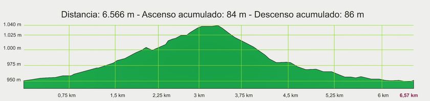 | Distancia: 6,56 km | Duración: 0 h. 25 min. | Dificultad: Fácil |